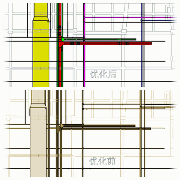 管線優(yōu)化調(diào)整,是應(yīng)用于機(jī)電安裝工程的施工管理技術(shù),涉及到安裝工程中暖通、給排水、電氣、建筑智能化等專業(yè)的管線安裝??贫裙こ處熗ㄟ^(guò)整合各專業(yè) BIM 模型,進(jìn)行碰撞檢查??紤]各方面因素進(jìn)行 BIM 模型調(diào)整。